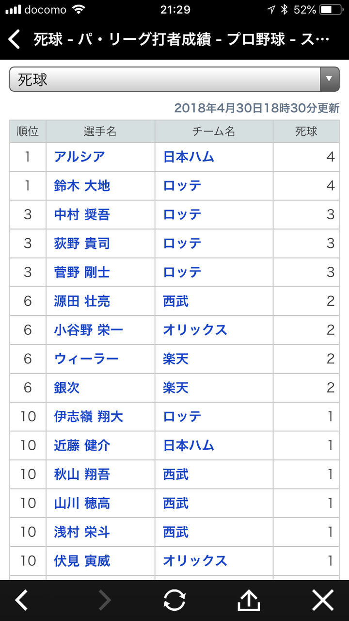 パ・リーグのデッドボール数ランキング、何かおかしい… 2018年04月30日 カテゴリ:パ・リーグ 1: 風吹けば名無し@\(^o^)/ 2018/04/30(月) 13:53:14.12 ID:ruE8kQu60 1アルシア(日)4 2中村奨吾(ロ)3 2荻野貴司(ロ)3 2鈴木大地(ロ)3 2菅野剛士(ロ)3 6源田壮亮(西)2 6ウィーラー(楽)2※上記は4/29終了時点最新は下記 【パ・リーグのデッドボール数ランキング、何かおかしい…】の続きを読む