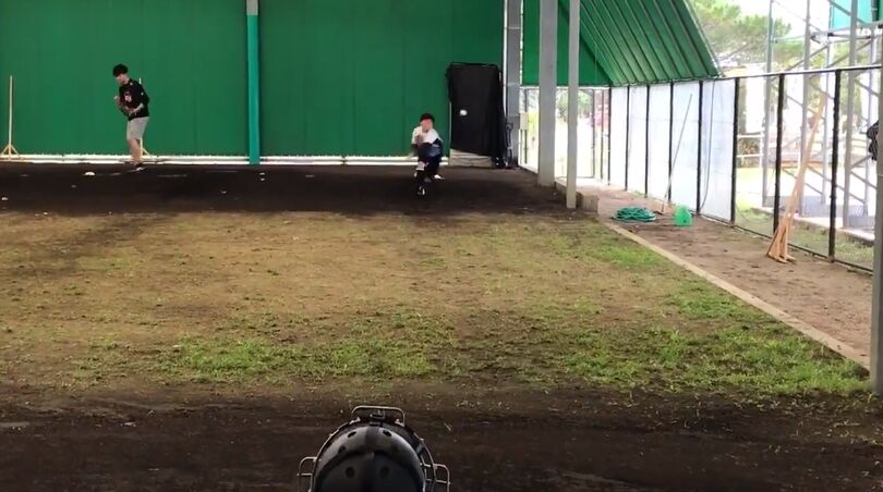 成田投手は捕手を座らせてピッチングを行っています。(広報) #chibalotte pic.twitter.com/D5AFZZLMoo