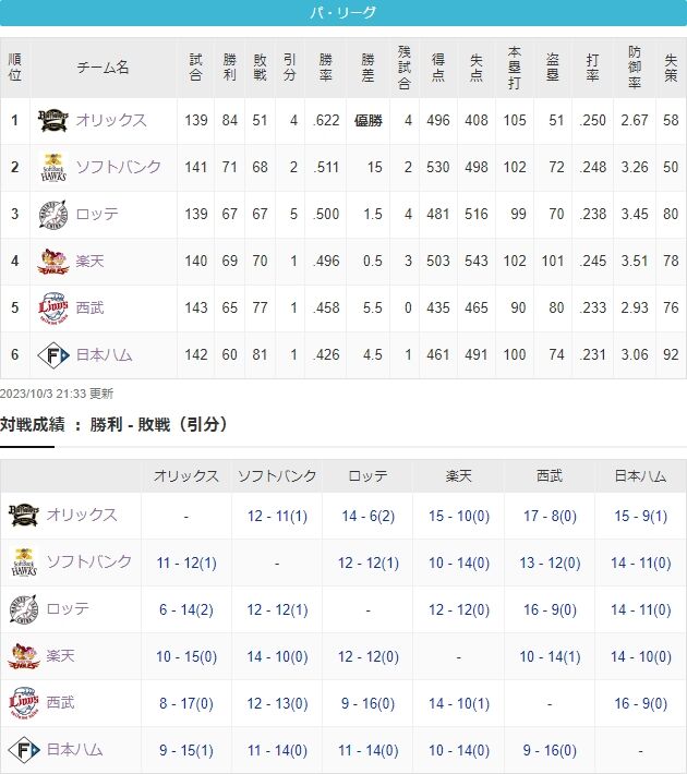 ロッテ、山村に2試合連続被弾…致命的失点で4点差