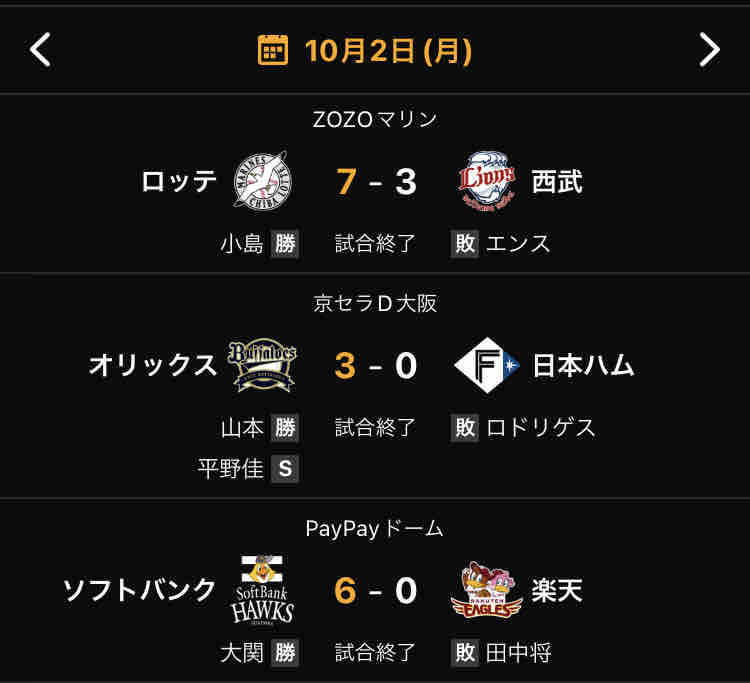 パ・リーグ順位表(10月2日)ロッテ3連勝で3位浮上、SBが楽天を下し2位~4位が1G差とかつてないほどの大混戦 2023年10月03日 カテゴリ:パ・リーグ順位(予想) 1: 名無しさん@おーぷん 23/10/02(月) 21:04:38 ID:iDC6 平野250s 【パ・リーグ順位表(10月2日)ロッテ3連勝で3位浮上、SBが楽天を下し2位~4位が1G差とかつてないほどの大混戦】の続きを読む タグ :#パ・リーグ#順位表