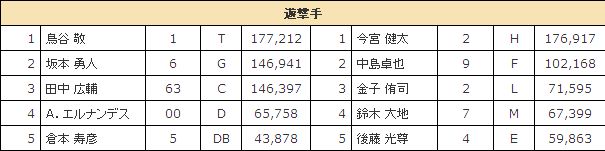 4鈴木 .268 2 16 犠打12 盗塁*1 被四死球18