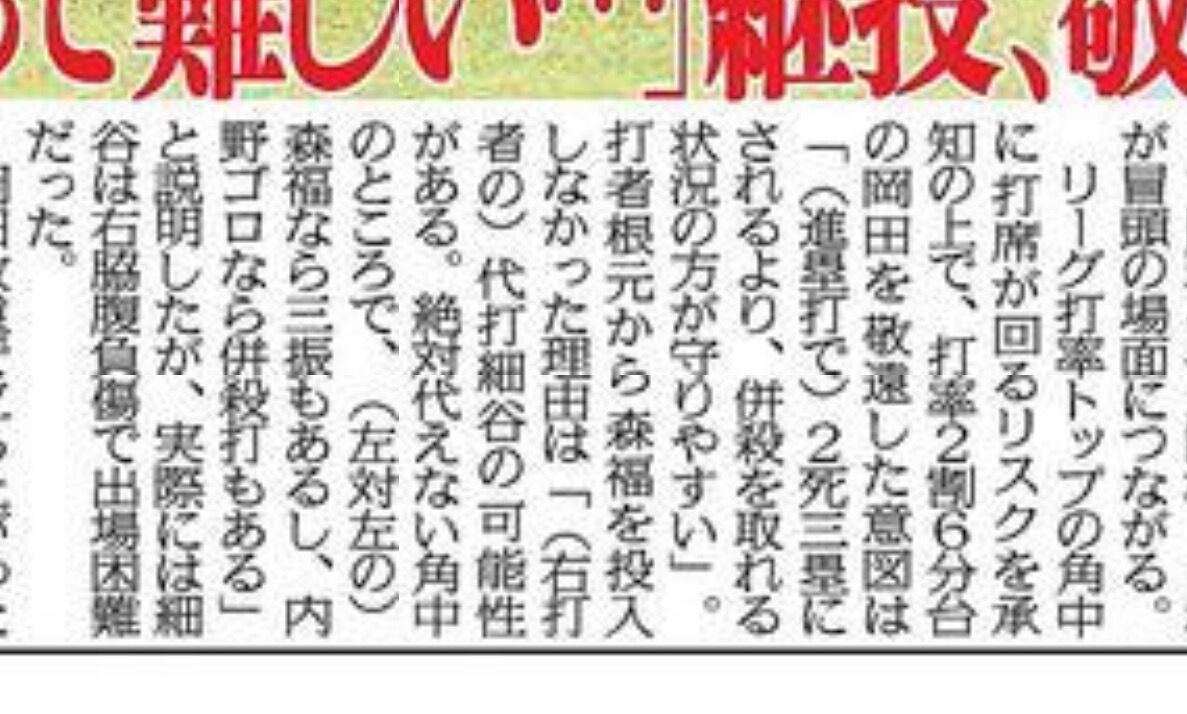 代打細谷の可能性があるはさすがにおかしいやろ