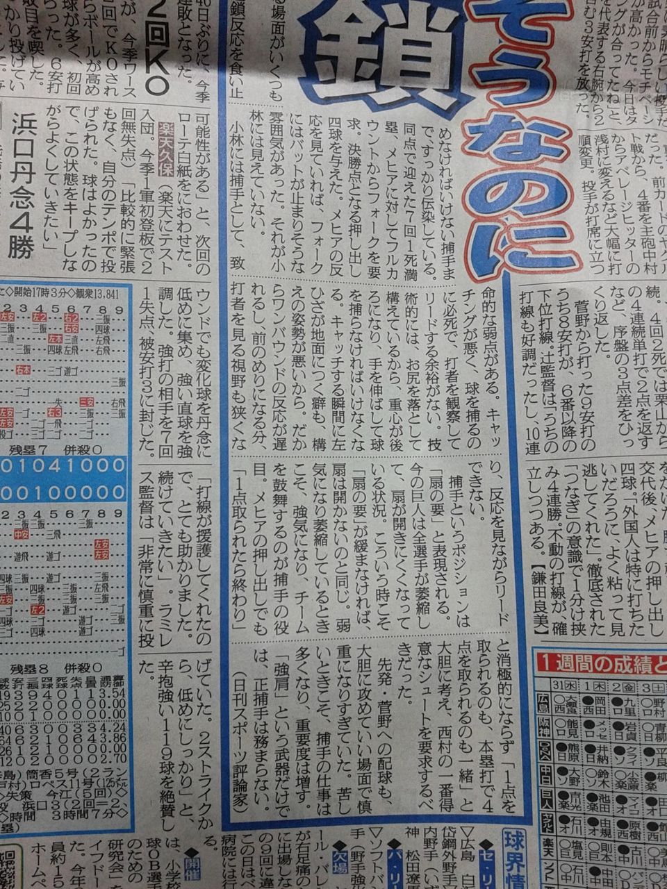 捕手の過大評価はともかく、捕手で一番大事なのがキャッチングなのは確かじゃね?