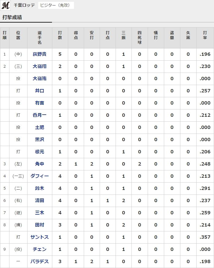 ▼本日の成績はこちらhttps://t.co/w3d5Sn1AFY#chibalotte pic.twitter.com/QmNPKUnZ5C