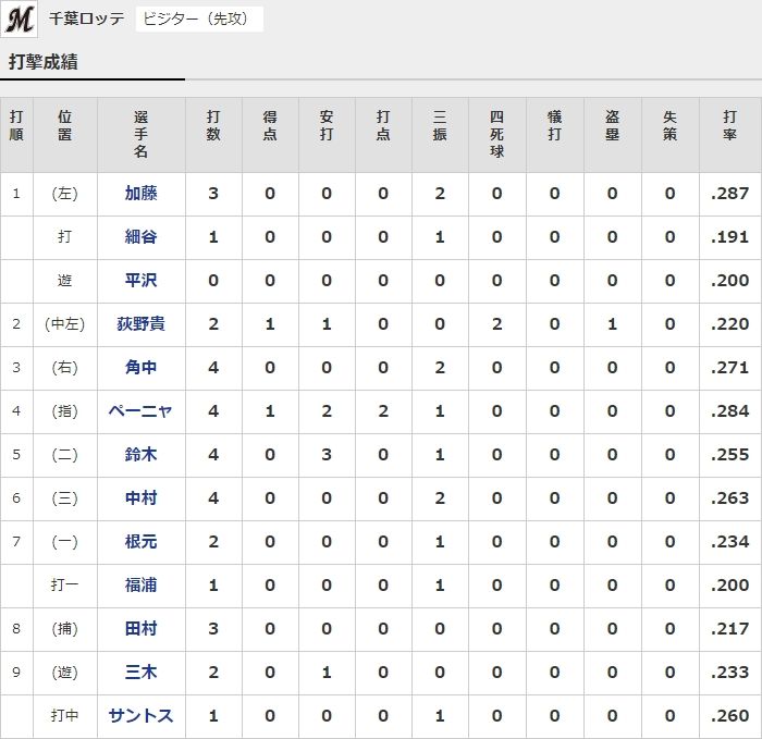 ▼本日の成績はこちらhttps://t.co/iyXeHoQF82#chibalotte pic.twitter.com/xbI06LEuNl
