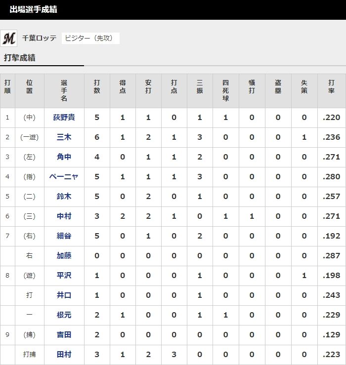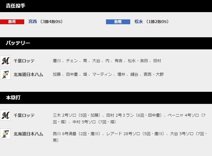 ▼本日の成績はこちらhttps://t.co/gqIYSONdRn#chibalotte pic.twitter.com/Zh5Huuf5R8