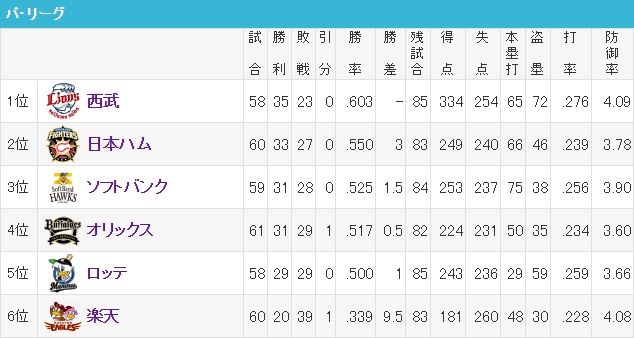 ハム的には4連敗で2位にいる理由がわからんわ。