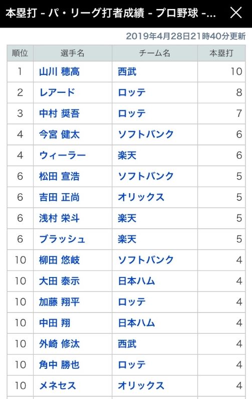 今季10勝のうち5勝がソフトバンクで3勝が楽天とか草
