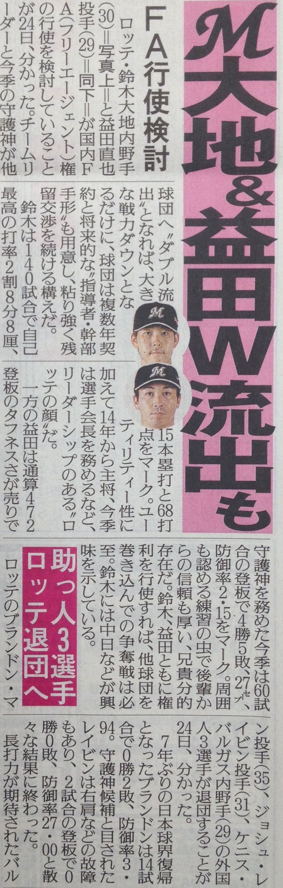 ロッテが誠意見せれば大地が他球団に行くことはねーわ