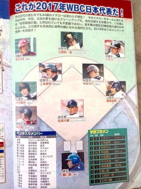 2017年のWBCスタメンwwwwwwwwwwwwww