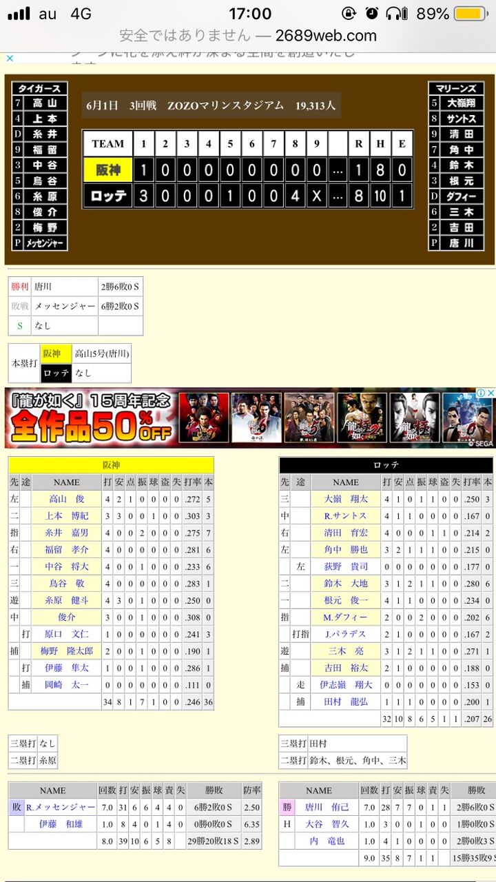 自分で貼っといて今更気づいたけど阪神の得点高山の先頭打者本塁打だけで草