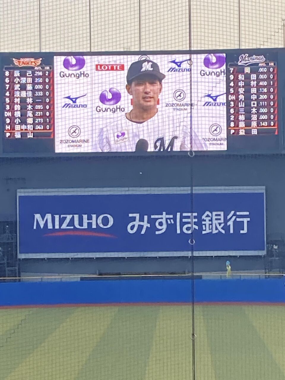 今季公式戦初登板初勝利の #本前郁也 投手。「ヒーローインタビューは緊張しました!」と笑顔で答えていました。#chibalotte #広報 pic.twitter.com/iJMxyC1RIc