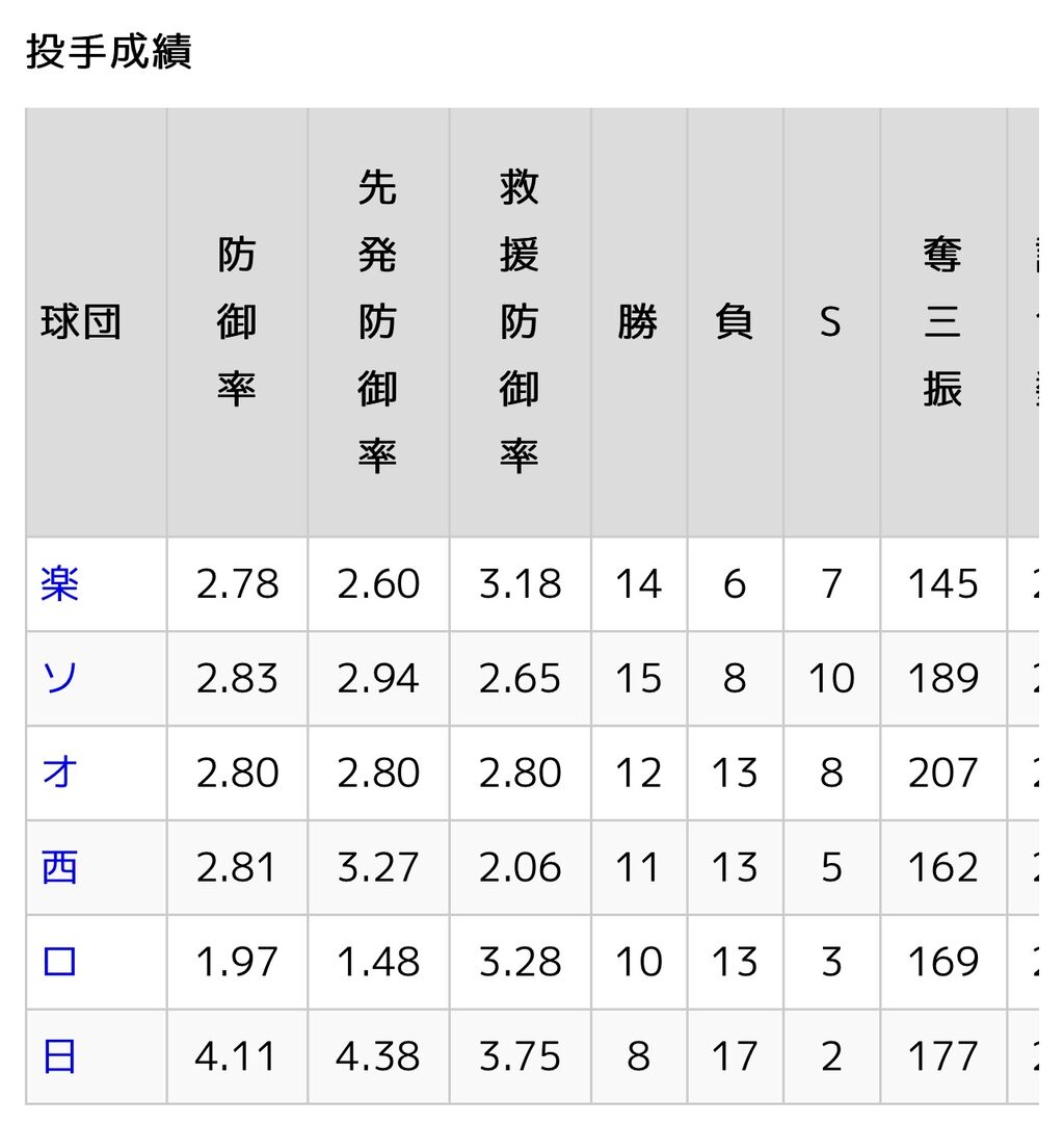 これだけ先発がいいのに延長戦7試合も行ってて1回しか勝ててないんや