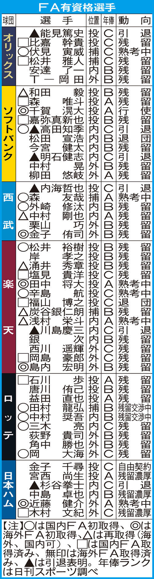 てか吉田正尚と千賀もぬけるしストーブリーグ次第で優勝チーム変わりそうやわ