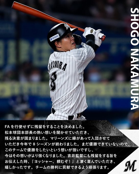 中村奨吾選手が4年契約で契約更改しました。#chibalotte