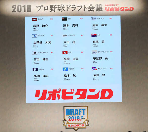 藤原、辰己を外して同じ外野手の近本光司(外野手・大阪ガス)を1位で指名し、2位小幡竜平(遊撃手・延岡学園)、3位木浪聖也(遊撃手・Honda)まで野手を並べた。
