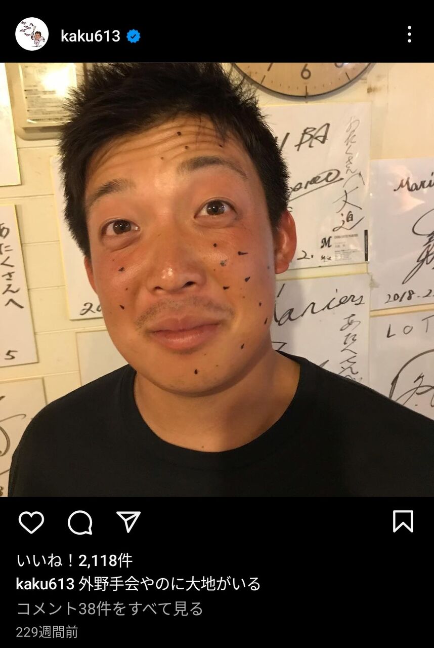 田村龍弘について「ジャギ似で自称イケメンのタムラさん」