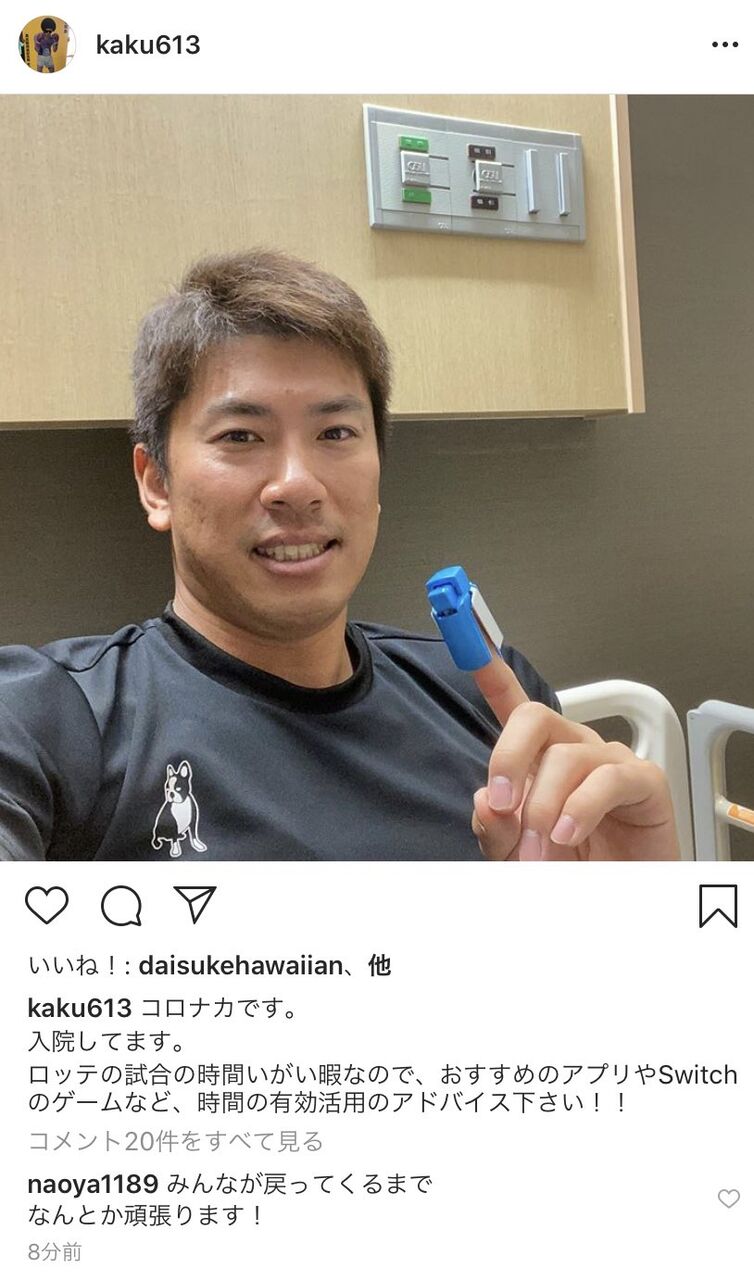 代走 荻野「(ロッカールームの網越しにとったデスパイネの写真を載せて)モンスター捕獲!」