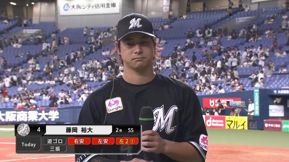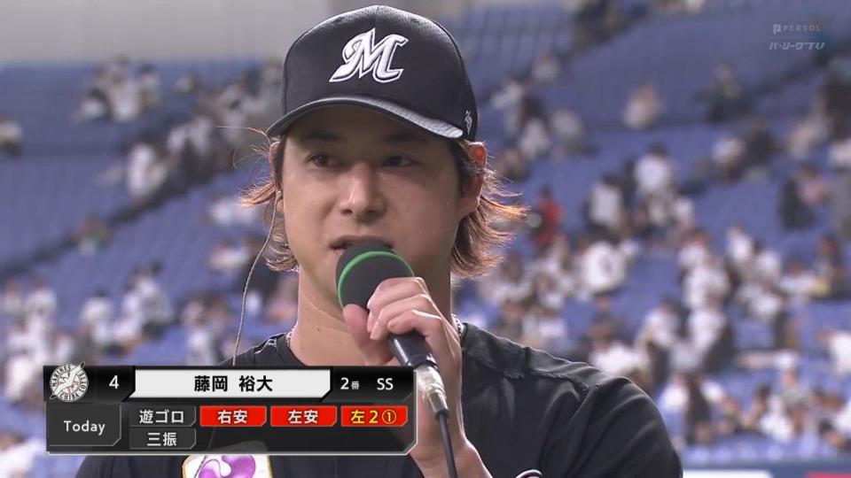 本日のヒーローは決勝タイムリー含む猛打賞の大活躍をみせた #藤岡裕大 選手!#chibalotte #MarinesBaseball #TodaysHero pic.twitter.com/cP4GqJiHbO