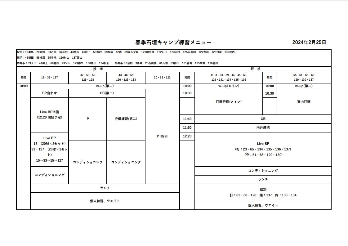 他にも試したい選手おるけどそれやとベンチ漬けなってしまうから石垣島でみっちり練習してこいって流れかね