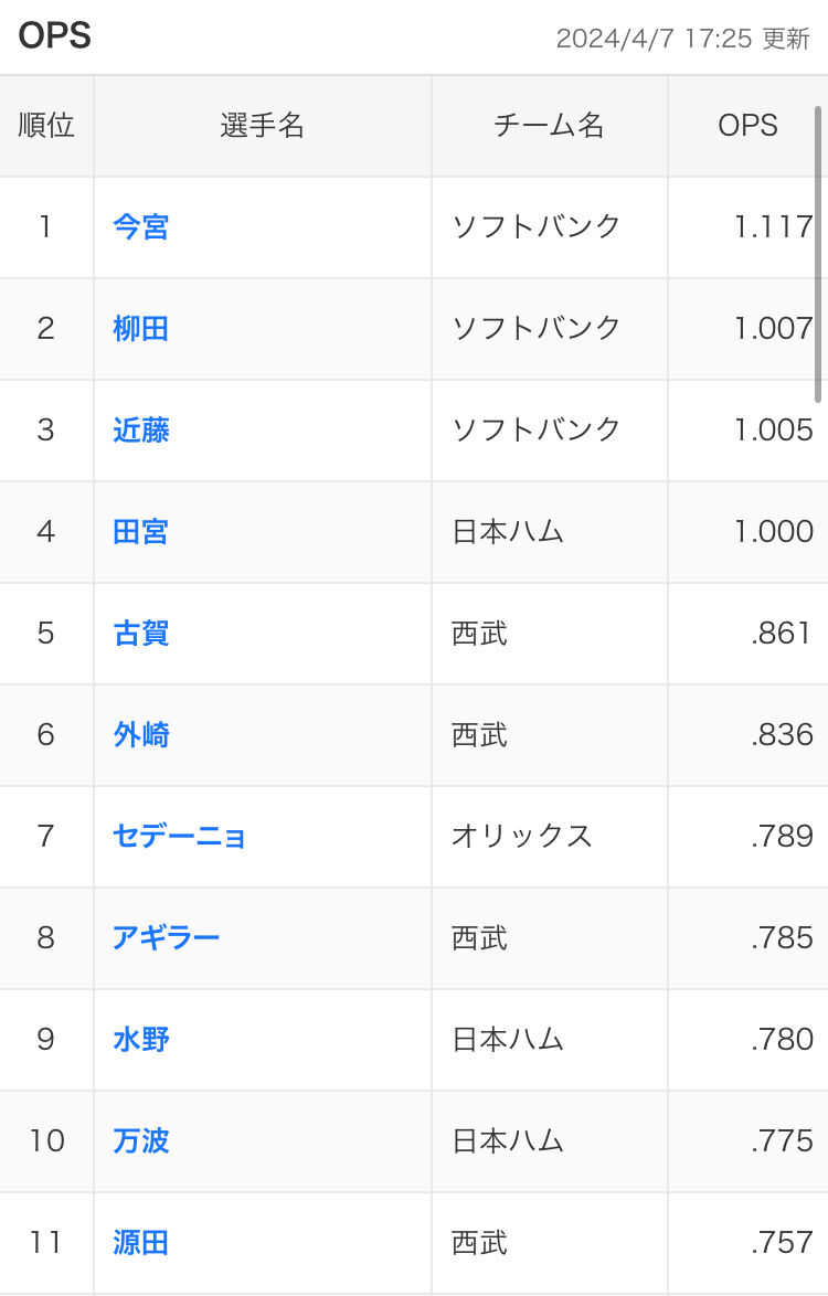 この時期に.800以上がこれしかいないって打低過ぎじゃない?