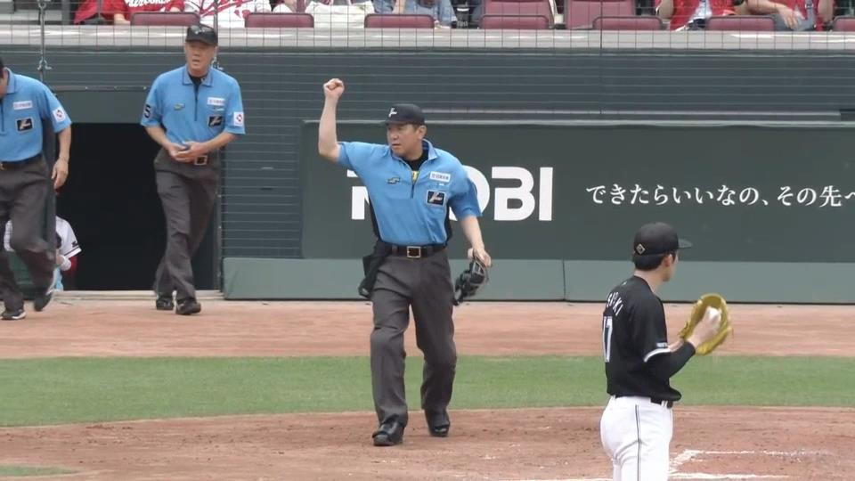 ※GIF画像(ファーストのプレーセーフ判定にリクエスト)