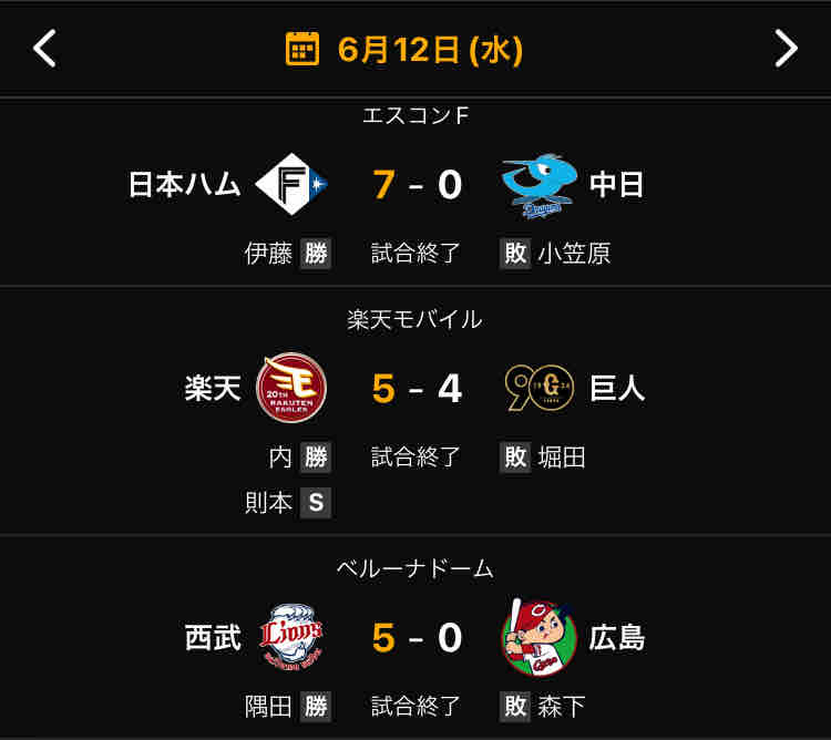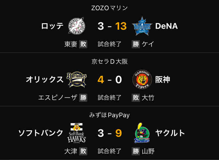 交流戦のゲーム差が離れみずペイの連勝も止まってしもうたが