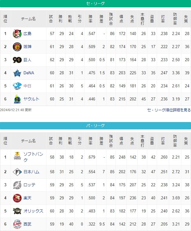 パリーグ交流戦前までAとBクラス7ゲーム差ぐらいあったのにもう2ゲーム差か やばいな