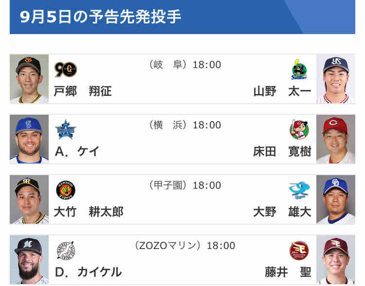 9/5(木)の予告先発