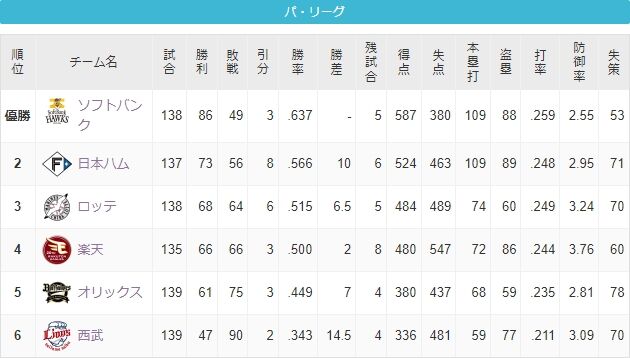 でもって、楽天6勝2敗必要だけど、これもまあ、無くは無いんだよな・・・・逆に楽天はあと2敗しか出来ないという考えもできるが