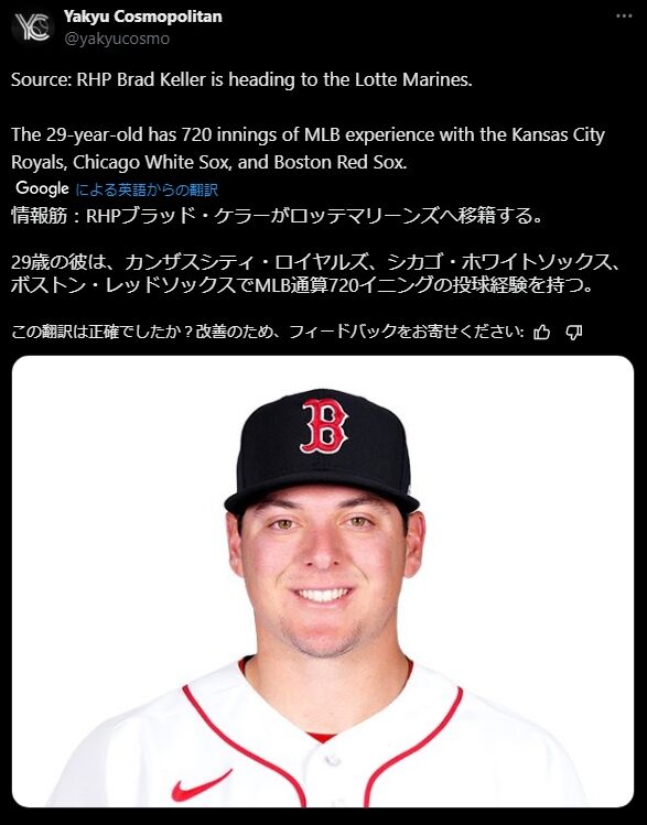 ブラッド・ケラー(29)が千葉ロッテマリーンズに移籍との情報。