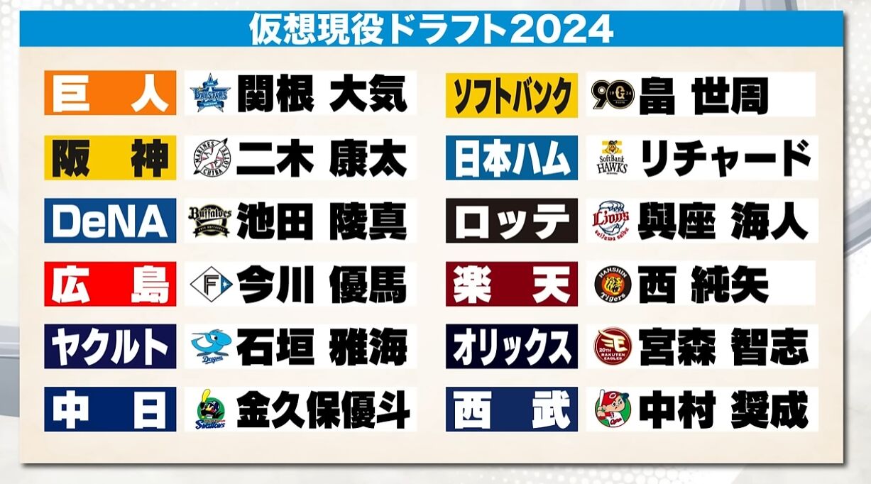 最多指名西武→広島→ハム→ソフトバンク想定?