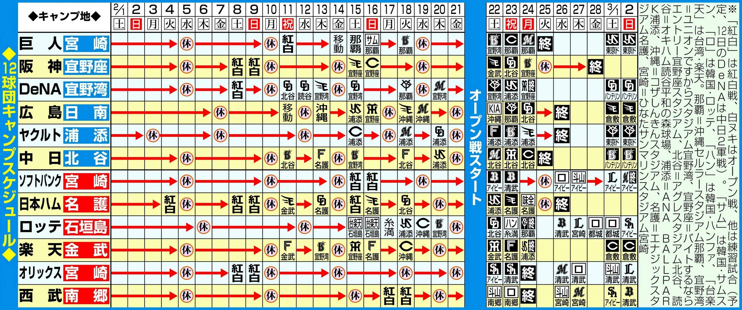 実戦の早い沖縄キャンプ組より宮崎キャンプ組の方が優勝してる傾向だけど