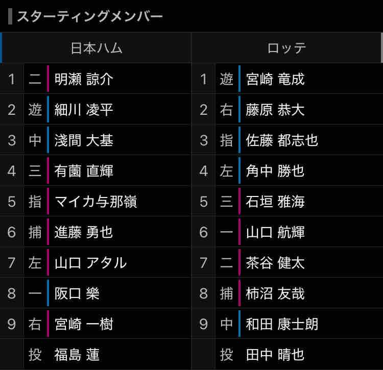 ファーム ロッテ スタメン