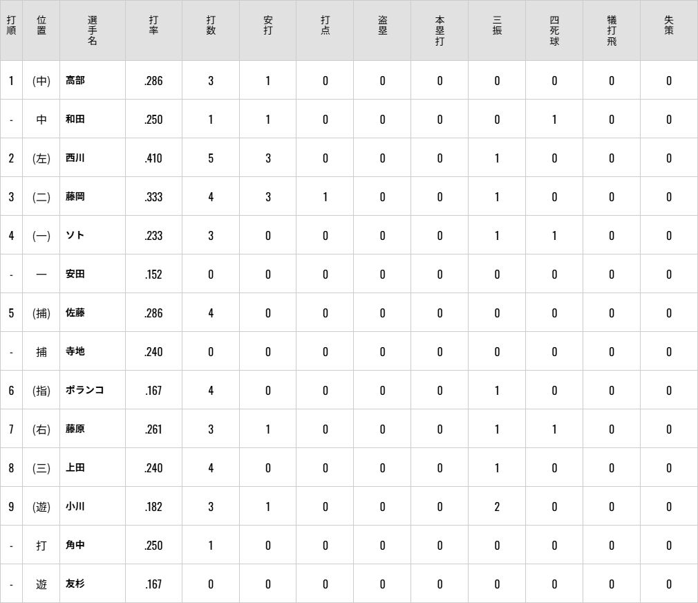 高部はそのまま活躍したしロッテのオープン戦で無双した打者は早晩期待出来るよ