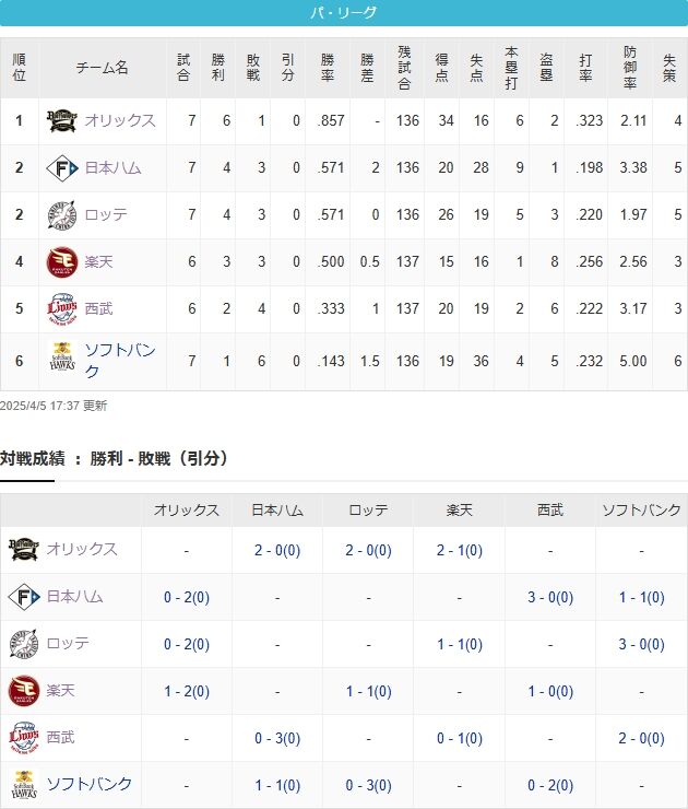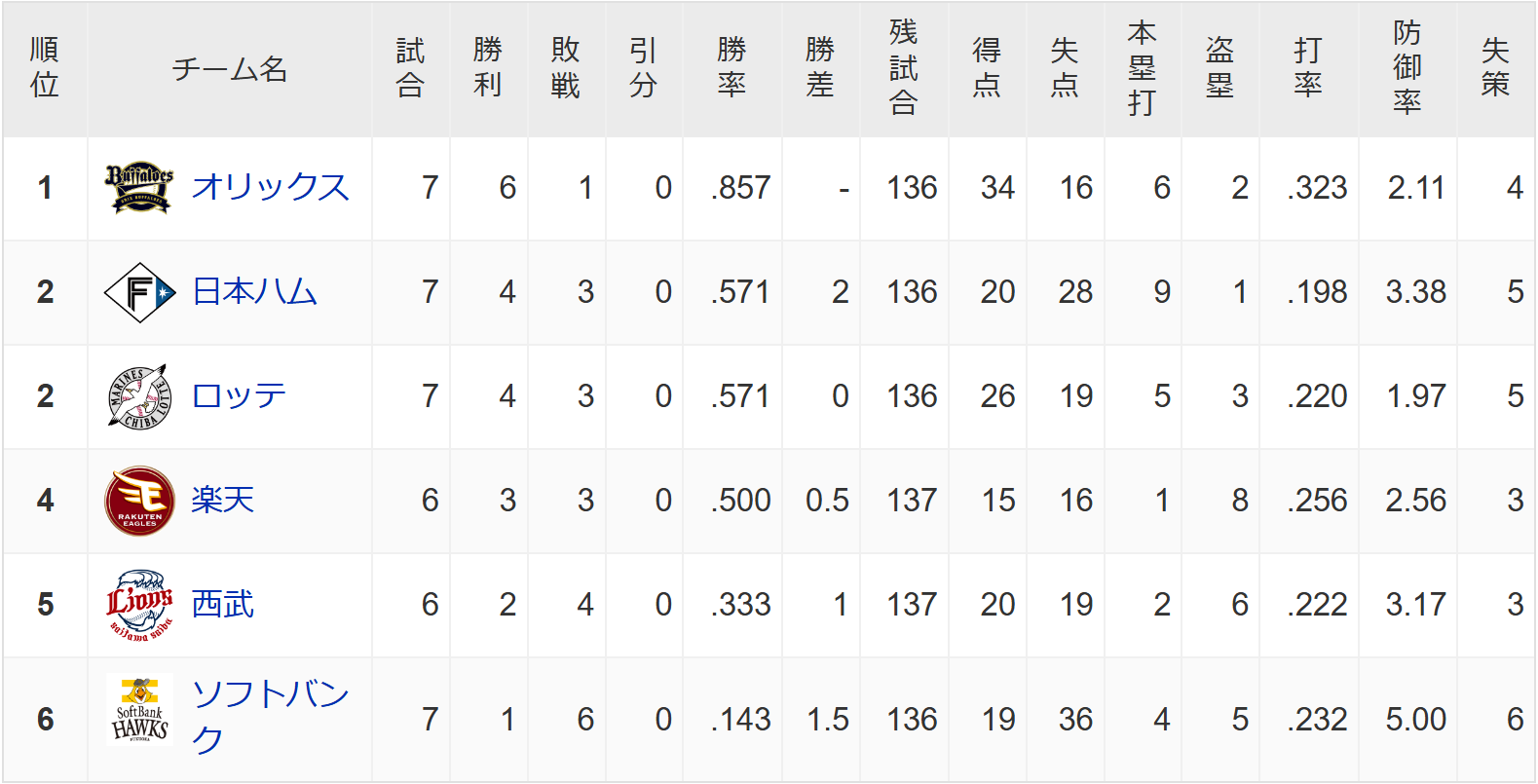 序盤とはいえソフトバンクが最下位独走しますなんて信じる奴おらんわ