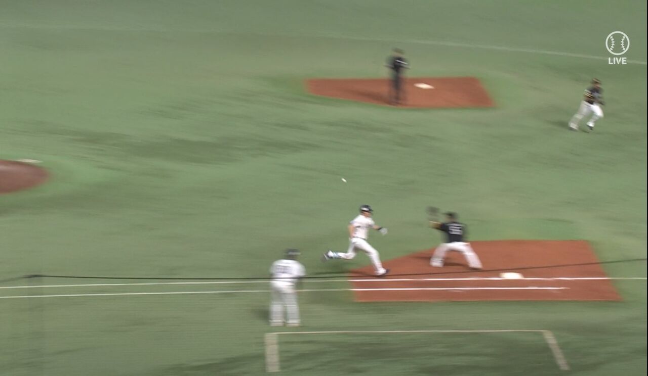 ホーム側に送球ズレたのに合わせたのかと思ったけどベースに向かって投げてるから山川のミスやな