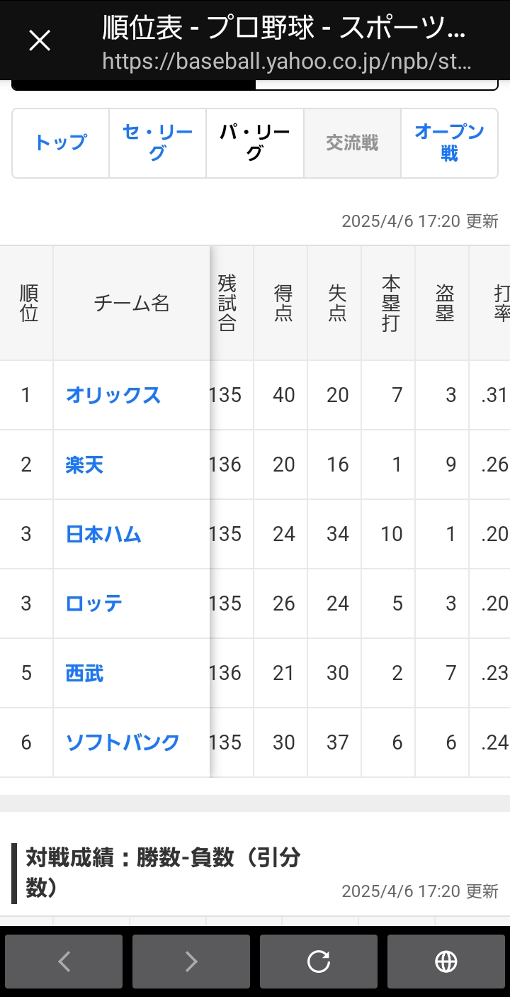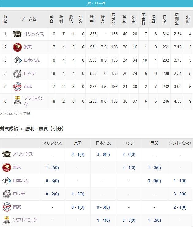 オリックスは開幕カードで楽天に勝ち越しやね