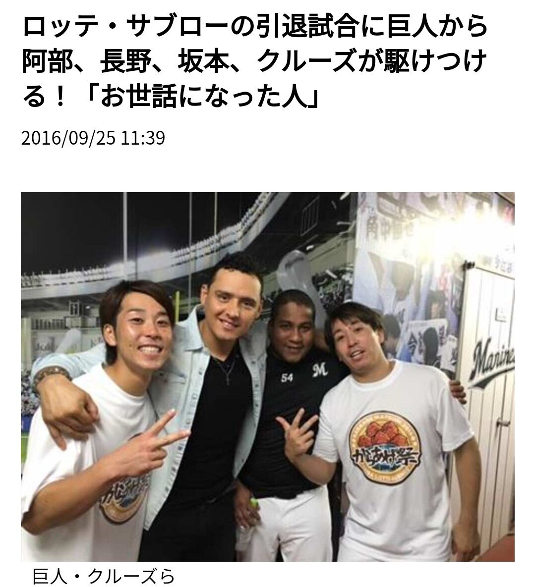 阿部慎之助、長野、内海、坂本勇人、クルーズが引退試合観にきてたもんな