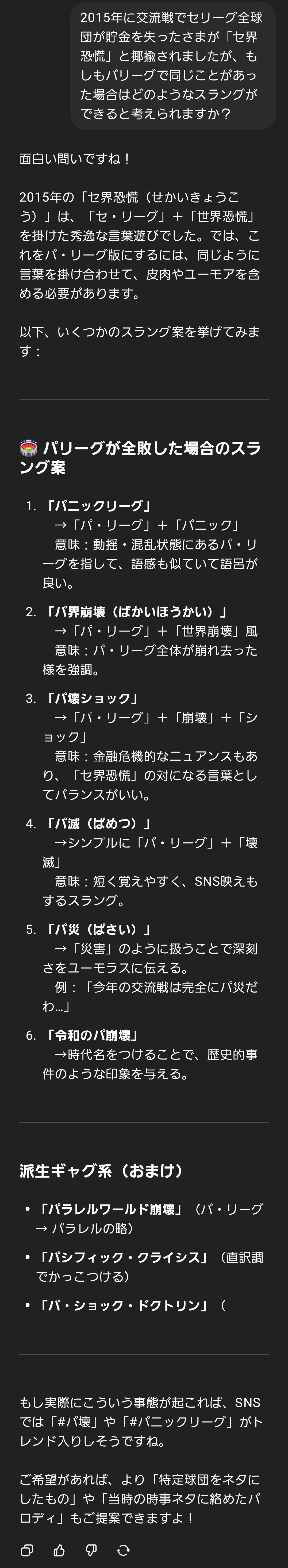 セ界恐慌ってパリーグやとどう言えばええんやろな