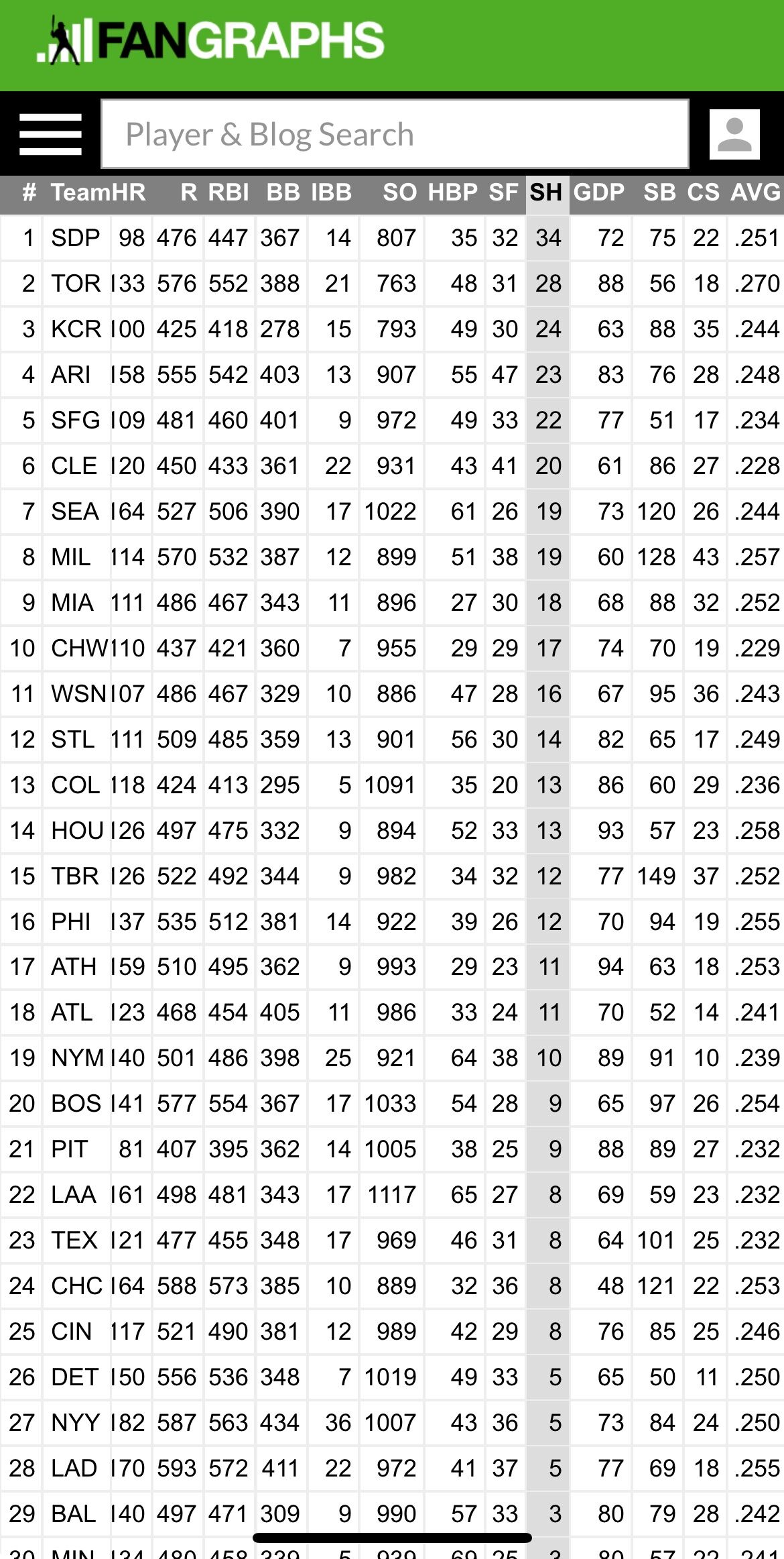勝ててるチームが犠打数の1位と2位なんだからバントは有効なのでは?