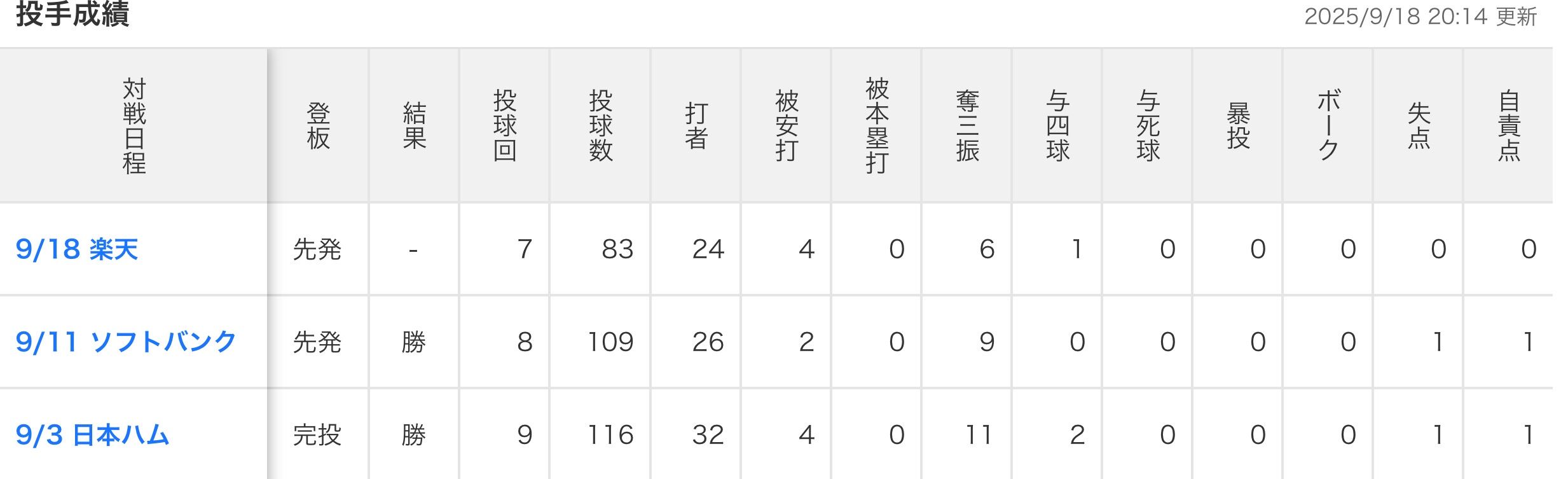来週ハム戦のカード頭で完封してくれよ