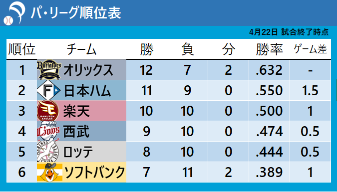 パ・リーグ月間勝率