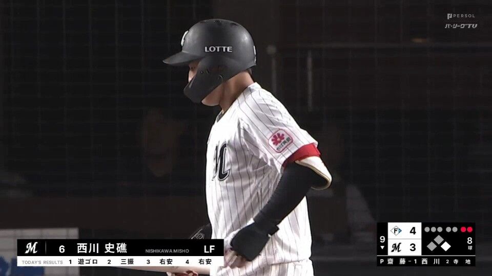 *位 西川 .285 規定まで残り14打席(4試合)