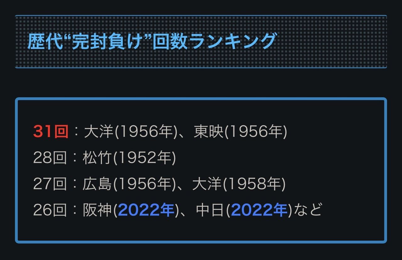 25回も完封負け喰らって12球団ワースト