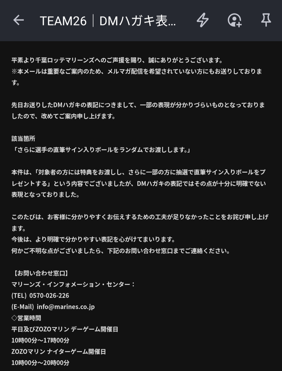 消費者庁によると、運営会社は今年1月に郵送したダイレクトメール(DM)の中で、2025年シーズンの有料ファンクラブに入会すればDMを受け取った人限定で選手の直筆サインボールが必ずもらえると思わせるような表示をしていた。実際に特典をもらえたのは一部にとどまったという。