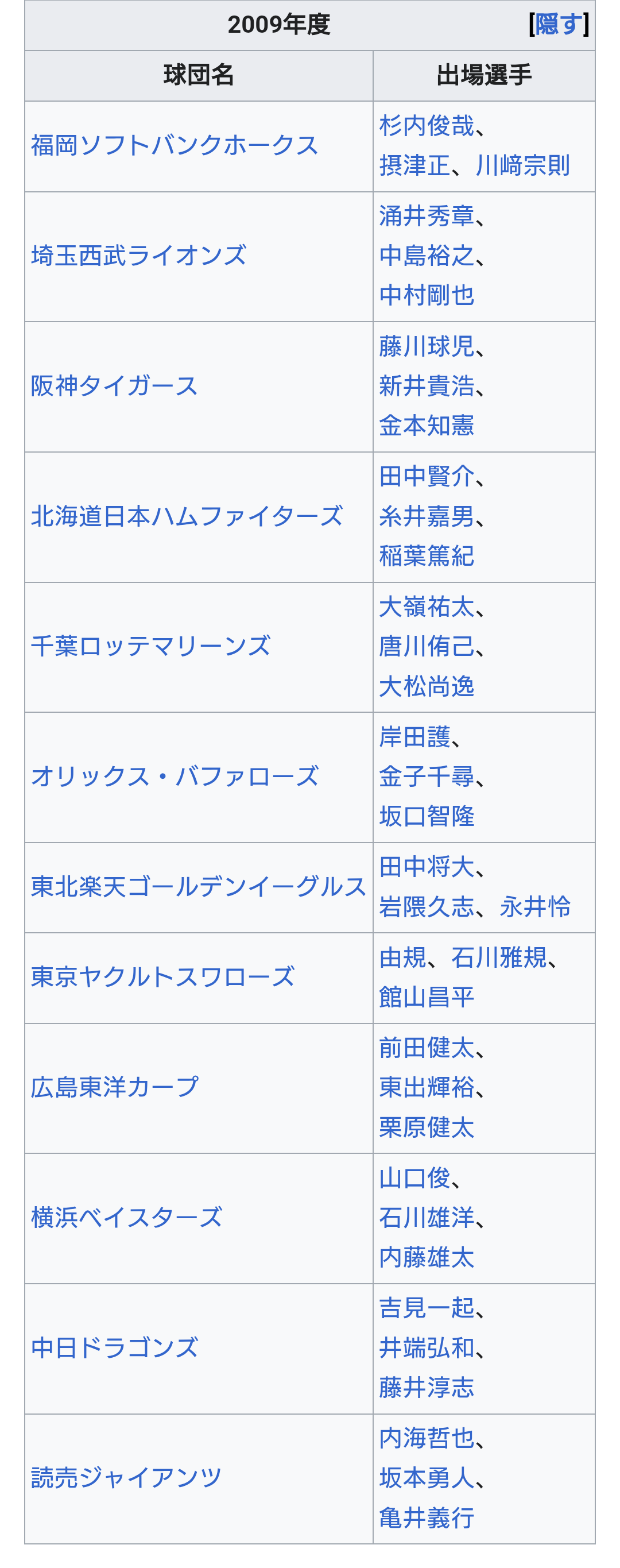 【パ・リーグ出場選手】(敬称略)