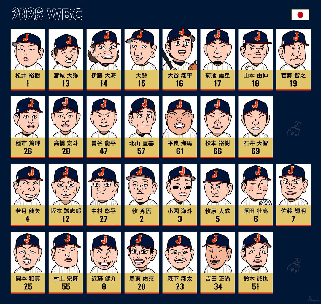大谷は似顔絵でも主人公顔なんやな