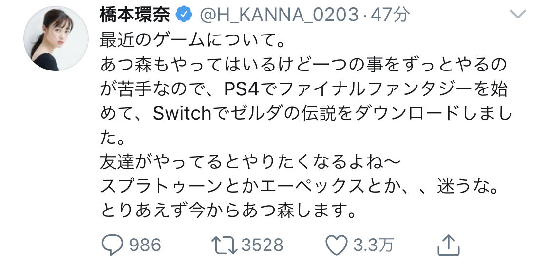 — 橋本環奈 (@H_KANNA_0203) May 1, 2020