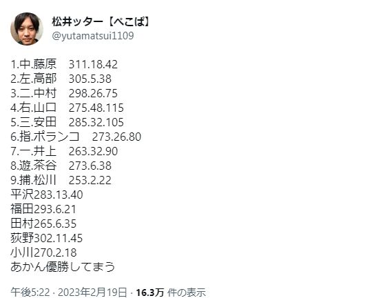 — 松井ッター【ぺこぱ】 (@yutamatsui1109) February 19, 2023